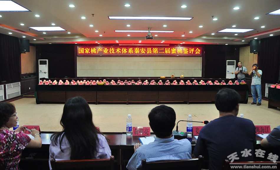 天水在線秦安報道 8月8日上午,國家桃產(chǎn)業(yè)技術體系秦安縣第二屆蜜桃鑒評會舉行。國家桃產(chǎn)業(yè)技術體系首席科學家、北京農(nóng)林科學院林果所研究員姜全帶領國家桃產(chǎn)業(yè)體系專家組對秦安縣篩選出的北京七號、倉方早生、大久保、油桃、蟠桃等多個優(yōu)良主栽培品種進行鑒定、評審。