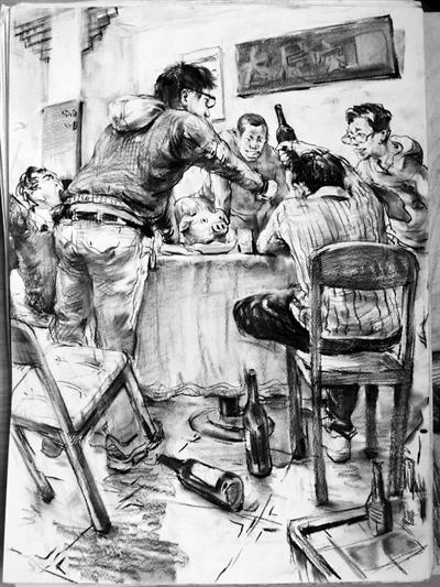 記得第一天走進畫室,他先學(xué)著排了一下午線條。第二天,老師的助教也是剛剛考上大學(xué)的一名學(xué)生,不由分說給了他一個阿格里巴的石膏像,讓其臨摹。但誰成想,第二天,他的作業(yè)讓所有人都為之一驚,畫室的人紛紛覺得他是名學(xué)畫畫的好手。
