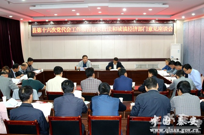9月21日,秦安縣委常委、政法委書記楊喜春主持召開縣第十六次黨代會工作報告征求政法和城鎮(zhèn)經(jīng)濟部門意見座談會?h法院、檢察院、公安、司法、民政、住建、規(guī)劃、國土、安監(jiān)、環(huán)保、房管、地震、工商、質(zhì)監(jiān)、招商、工信、商務(wù)、綜合執(zhí)法等相關(guān)單位負責(zé)人參加了會議。