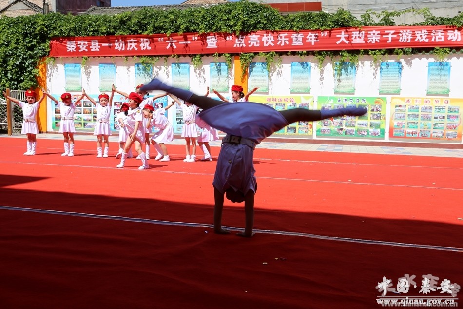 為慶祝“六一”國際兒童節(jié),給孩子們營造一個積極健康、輕松愉快的節(jié)日氛圍,5月27日,秦安縣第一幼兒園開展了由全體幼兒及其家長共同參與的慶“六一”文藝演出暨“點亮快樂童年”大型親子游戲活動,孩子們在豐富多彩的文藝表演和親子游戲中,盡情感受金色童年的快樂。(秦安縣第一幼兒園)