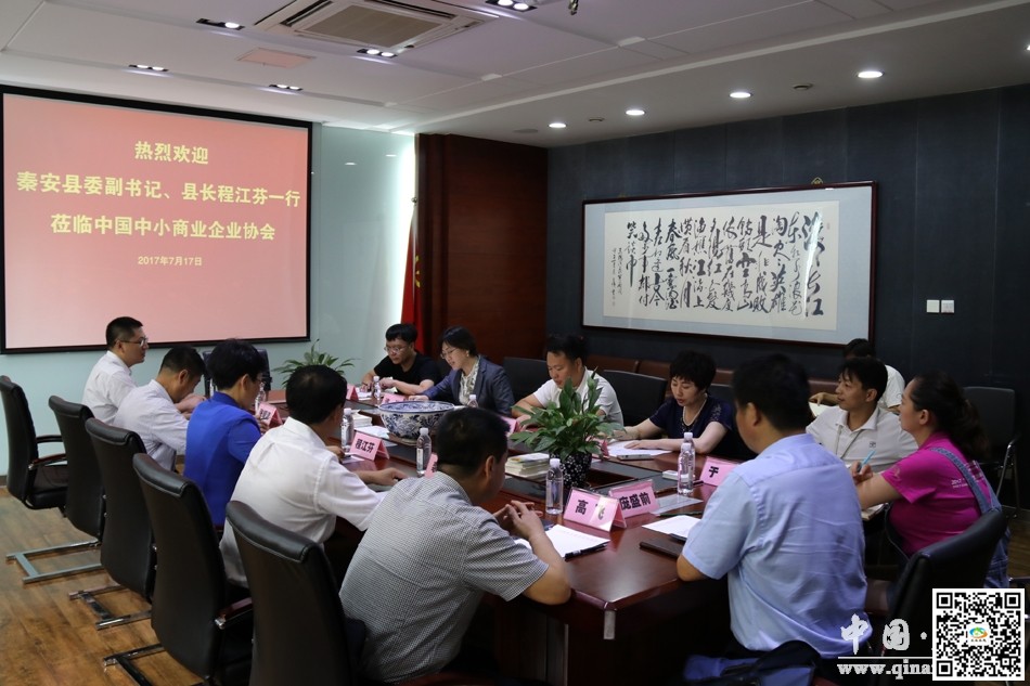 7月17日下午,中國中小商業(yè)企業(yè)協(xié)會(huì)常務(wù)副會(huì)長任興磊,副會(huì)長、展銷分會(huì)會(huì)長鮑鑫毳,常務(wù)副秘書長許湘、會(huì)員部部長劉夢洋,會(huì)員部常務(wù)副部長、美業(yè)分會(huì)分管聯(lián)系人孫士達(dá),交流合作部部長于洋、交流合作部副部長汪建勇、北京大美攝影董事長紫鏡,秦安縣委副書記、縣長程江芬,縣委副書記裴貴軍、縣人大常委會(huì)副主任張耀清、副縣長吳豪偉,縣政協(xié)副主席、扶貧辦主任高飛以及縣委辦、政府辦、教體局、人社局、職校負(fù)責(zé)人在北京舉行座談。