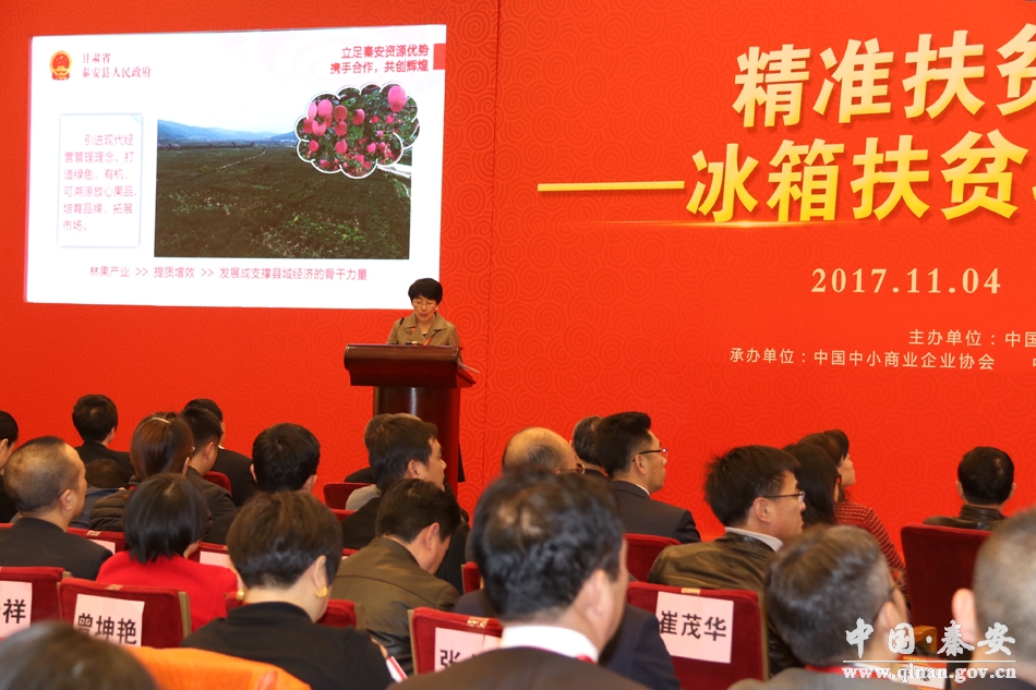 11月4日,由北京田覓密電子商務(wù)有限公司發(fā)起,主題為田覓密“精準(zhǔn)扶貧 冰箱扶貧”精準(zhǔn)扶貧農(nóng)產(chǎn)品銷(xiāo)售平臺(tái)啟動(dòng)儀式,在北京人民大會(huì)堂隆重舉行。秦安縣委副書(shū)記、縣長(zhǎng)程江芬,縣委常委、宣傳部部長(zhǎng)徐東明帶領(lǐng)縣政府辦、商務(wù)局、果業(yè)局和相關(guān)企業(yè)負(fù)責(zé)人參加了啟動(dòng)儀式。