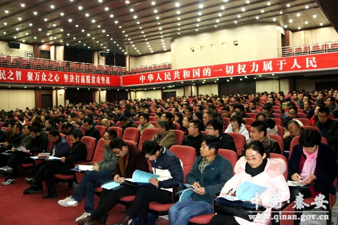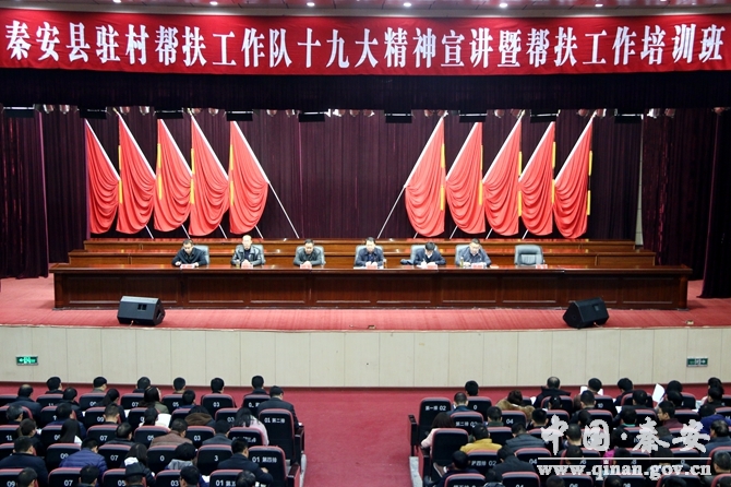 12月2日,秦安縣舉辦全縣駐村幫扶工作隊十九大精神宣講暨幫扶工作培訓(xùn)班?h委副書記裴貴軍、陳扶漢,縣人大常委會副主任張來祿,縣政府副縣長丁遲成、李廣宇,縣政協(xié)副主席高飛,193個貧困村駐村幫扶工作隊隊員、第一書記和各鎮(zhèn)精準扶貧站站長共計700多人參加開班儀式?h政府副縣長丁遲成主持開班儀式。