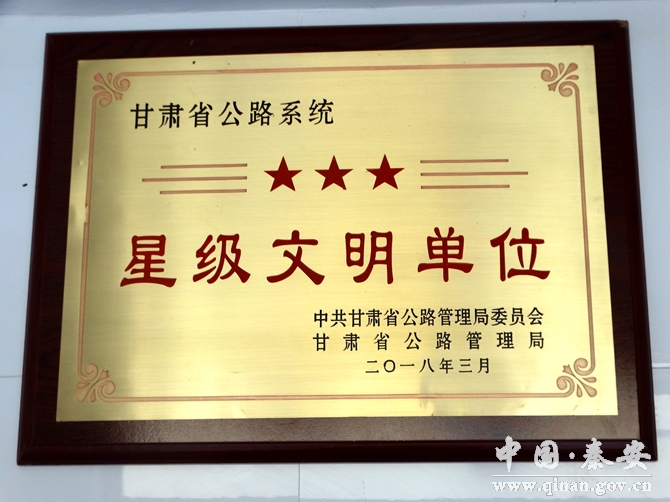 近日,秦安公路管理段榮獲甘肅省公路系統(tǒng)“三星級(jí)行業(yè)文明單位”榮譽(yù)稱號(hào)。