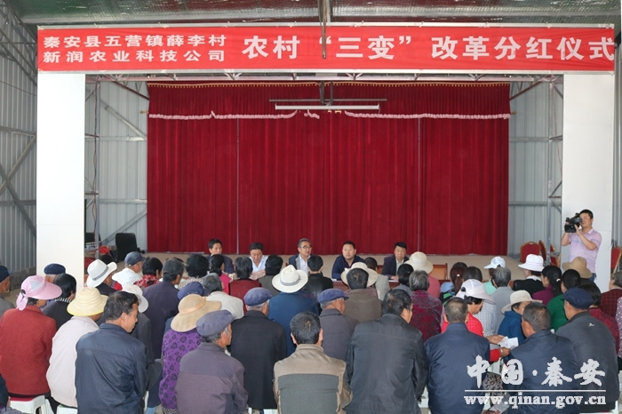 5月22日,秦安縣新潤農(nóng)業(yè)科技開發(fā)有限公司在五營鎮(zhèn)薛李村舉行了農(nóng)村“三變”改革分紅儀式,現(xiàn)場發(fā)放股金分紅46.3萬元。