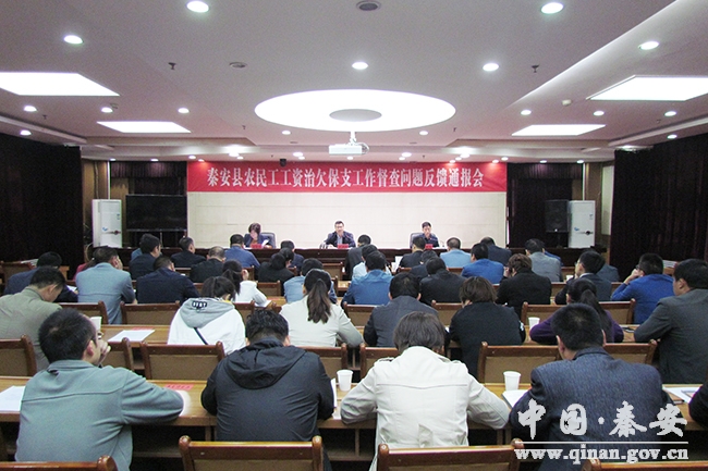 9月19日,秦安縣召開(kāi)農(nóng)民工工資治欠保支工作督查問(wèn)題反饋通報(bào)會(huì),縣政府副縣長(zhǎng)于劍鋒,政府辦、人社、住建等相關(guān)部門(mén)單位以及17鎮(zhèn)負(fù)責(zé)人,部分施工企業(yè)代表負(fù)責(zé)人等共計(jì)50余人參加會(huì)議。會(huì)議由縣政府研究室主任牛振凌主持。