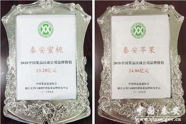 在9月27日舉行的2018第四屆中國果業(yè)品牌大會(huì)上,秦安蘋果、秦安蜜桃力壓來自全國各地的其他品牌,榮登“2018中國果品區(qū)域公用品牌價(jià)值榜”。其中:秦安蘋果品牌價(jià)值24.86億元、秦安蜜桃品牌價(jià)值13.28億元。中國果業(yè)品牌大會(huì)是中國果品行業(yè)以質(zhì)量安全和品牌建設(shè)為主題的全國性盛會(huì),已成為展示中國果業(yè)品牌建設(shè)成果的重要窗口,對(duì)提升果品質(zhì)量和安全水平,培育知名品牌,促進(jìn)果業(yè)轉(zhuǎn)型升級(jí)產(chǎn)生了積極的影響。