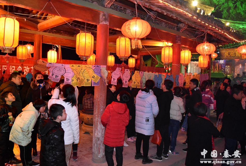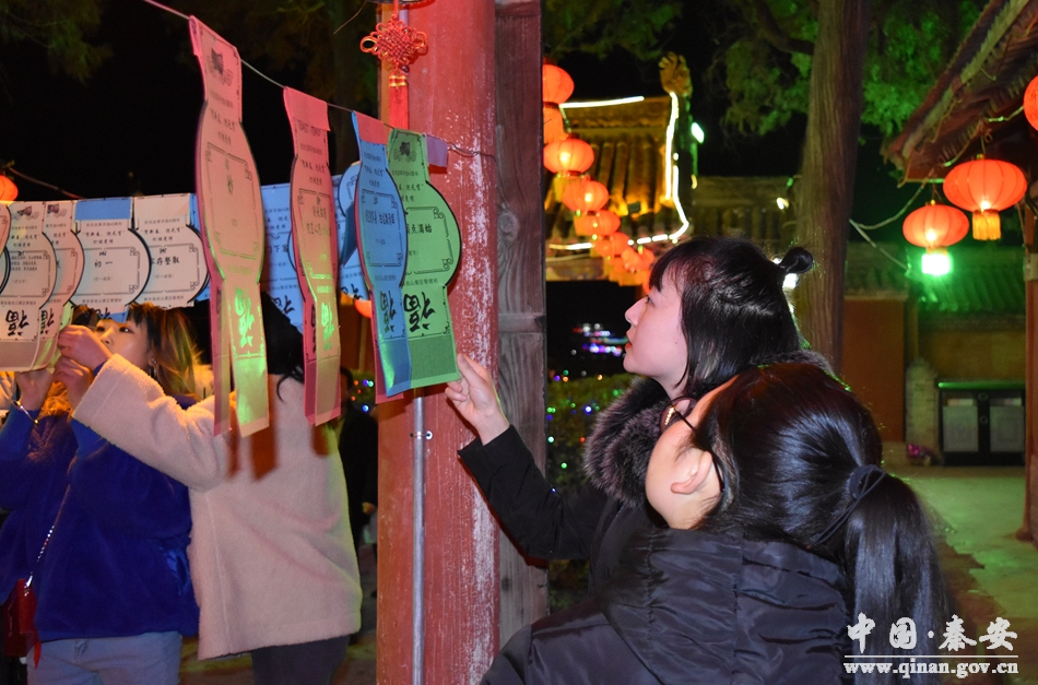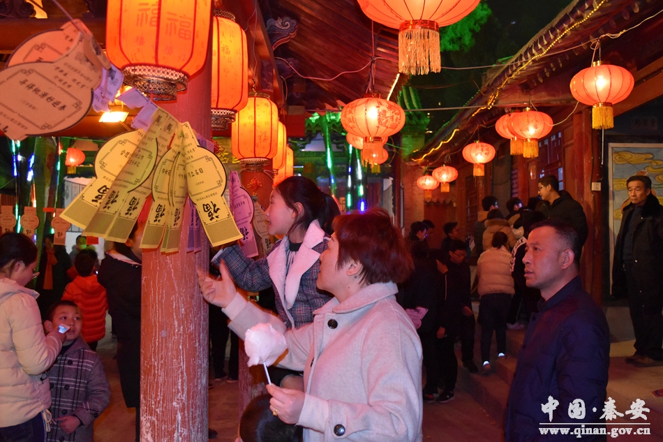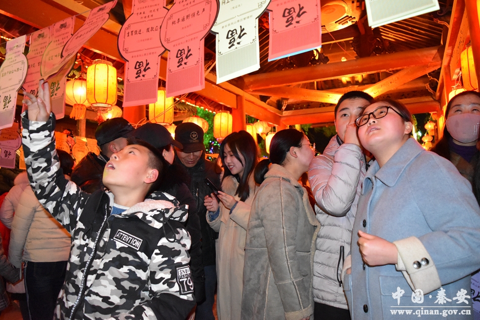 在猜燈謎現(xiàn)場,記者看到,吸引著不少市民在燈謎現(xiàn)場駐足思考。“我猜準了‘東家年邁、雄心不減’(打一常用語)是‘主人翁精神’”市民王先生帶著外甥高興地去兌換獎品。今年鳳山景區(qū)燈謎范圍廣、種類全、謎面豐富、內(nèi)容新穎,集知識性、趣味性、娛樂性、觀賞性及秦安元素于一體的燈謎,吸引了無數(shù)游客參與,大家爭先恐后看謎面、猜謎語,場面十分熱鬧。當晚,景區(qū)精心準備了300多條燈謎供游客競猜,猜中燈謎者可獲得精美禮品。今年鳳山燈會在裝飾上更加注重燈飾配置及色彩搭配,亮化效果與建筑物整體風格統(tǒng)一,還加入了中國風特色,突出傳統(tǒng)文化特色。美麗的景色少不了要拍照留念,到處都能看到扶老攜幼的身影和幸?鞓返男θ。