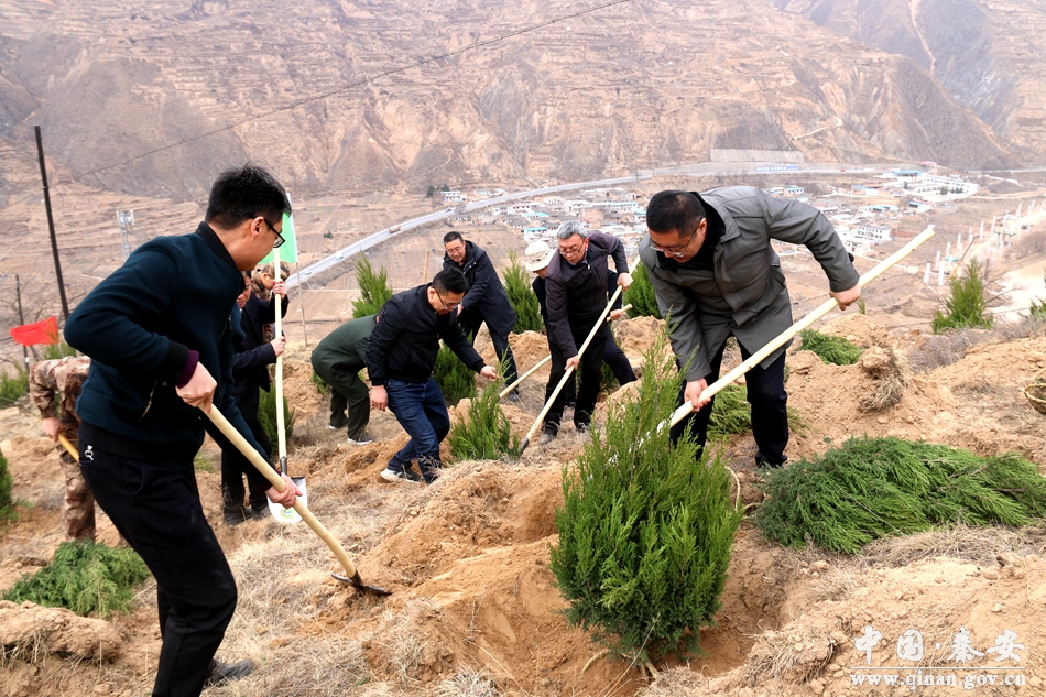 旖旎春光萬(wàn)物新,奮袖植綠鼓干勁。3月10日,在召開(kāi)了秦安縣國(guó)土綠化工作表彰大會(huì)后,郭海軍、程江芬、楊仁義等縣四大組織在家領(lǐng)導(dǎo)帶領(lǐng)縣四大辦及相關(guān)部門(mén)、單位負(fù)責(zé)人分組到西川鎮(zhèn)神明川村和興國(guó)鎮(zhèn)廟咀村植樹(shù)造林現(xiàn)場(chǎng),參加了春季義務(wù)植樹(shù)活動(dòng),號(hào)召全縣廣大群眾積極植樹(shù)造林、綠化美化家園。
