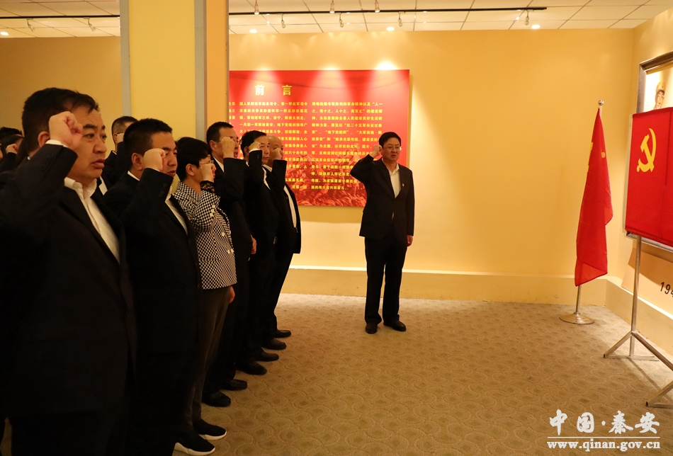 9月18日,秦安縣委常委會“不忘初心、牢記使命”主題教育讀書班通過向紅軍東渡葫蘆河紀(jì)念碑敬獻(xiàn)花籃、參觀秦安縣解放紀(jì)念館、重溫入黨誓詞等方式進(jìn)行革命傳統(tǒng)教育。