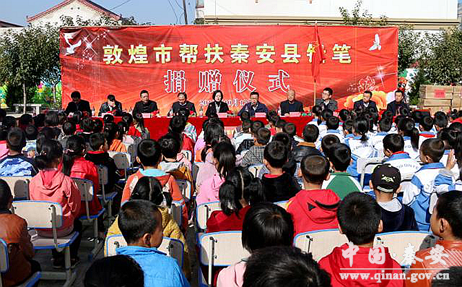 “老師,您快看,操場(chǎng)那邊怎么會(huì)有這么多漂亮的鉛筆!”蓮花中心小學(xué)四年級(jí)(1)班的學(xué)生們開(kāi)心地說(shuō)道。10月17日,敦煌市駐秦安幫扶總隊(duì)為蓮花中心小學(xué)捐贈(zèng)400余萬(wàn)支愛(ài)心鉛筆。此次活動(dòng)既是敦煌市深化對(duì)口幫扶,助力秦安縣脫貧摘帽的有力舉措,也是敦煌人民情系教育、捐資助學(xué)的拳拳愛(ài)心。