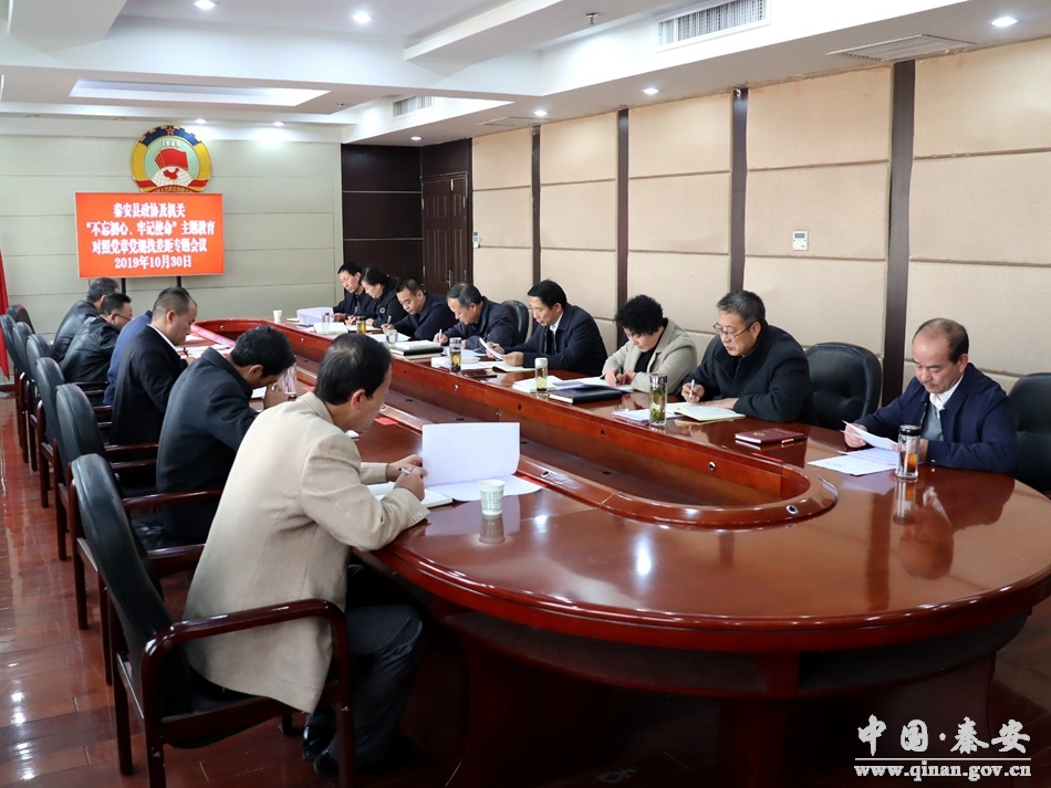 10月30日,秦安縣政協(xié)及機(jī)關(guān)召開(kāi)“不忘初心、牢記使命”主題教育對(duì)照黨章黨規(guī)找差距專(zhuān)題會(huì)議。縣政協(xié)黨組書(shū)記、主席楊仁義主持會(huì)議并講話。