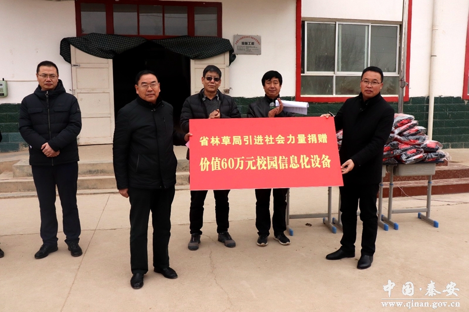 甘肅省林草局一級巡視員王建設(shè),省林草局改革發(fā)展處處長王順彥,秦安縣委常委、副縣長辛召東,甘肅青翔董事長、智慧校園甘肅業(yè)務(wù)總服務(wù)商雷易昆參加了捐助活動。
