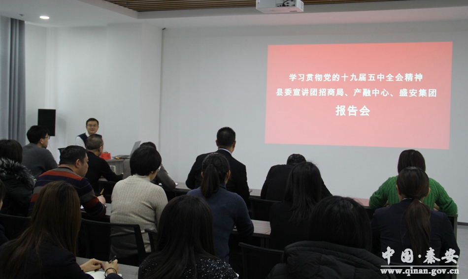 12月31日,秦安縣政府副縣長李虎宣講黨的十九屆五中全會精神,縣招商局、產(chǎn)融中心、盛安集團全體干部職工參加了宣講報告會。 宣講會上,李虎用精美的PPT課件、通俗易懂的語言,從《中共中央關(guān)于制定國民經(jīng)濟和社會發(fā)展第十四個五年規(guī)劃和二〇三五年遠景目標(biāo)的建議》起草及出臺過程,準(zhǔn)確把握“十四五”規(guī)劃和2035年遠景目標(biāo)建議,科學(xué)把握各個五年計劃的具體目標(biāo)及各屆全會的召開時間與目標(biāo)任務(wù),充分認(rèn)識黨的十九屆五中全會的重大意義等多個方面,對黨的十九屆五中全會精神進行詳細(xì)解讀,分三個板塊對《中共中央關(guān)于制定國民經(jīng)濟和社會發(fā)展第十四個五年規(guī)劃和二〇三五年遠景目標(biāo)的建議》架構(gòu)15個大的方面60條內(nèi)容進行闡述,對“十四五”時期經(jīng)濟社會發(fā)展要處理好的5大關(guān)系、必須遵循的9項指導(dǎo)思想與基本原則、6個新目標(biāo)、12項重點任務(wù)、6項保障舉措進行高度概括與系統(tǒng)解讀。