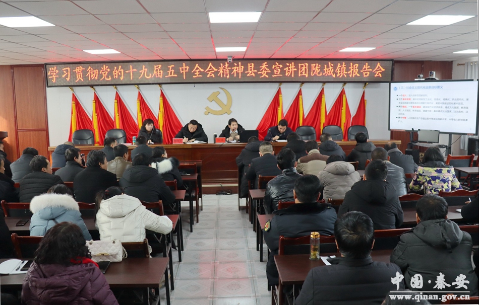 1月7日,秦安縣政府副縣長沈崴在隴城鎮(zhèn)宣講黨的十九屆五中全會(huì)精神,隴城鎮(zhèn)全體領(lǐng)導(dǎo)干部參加了宣講會(huì)。