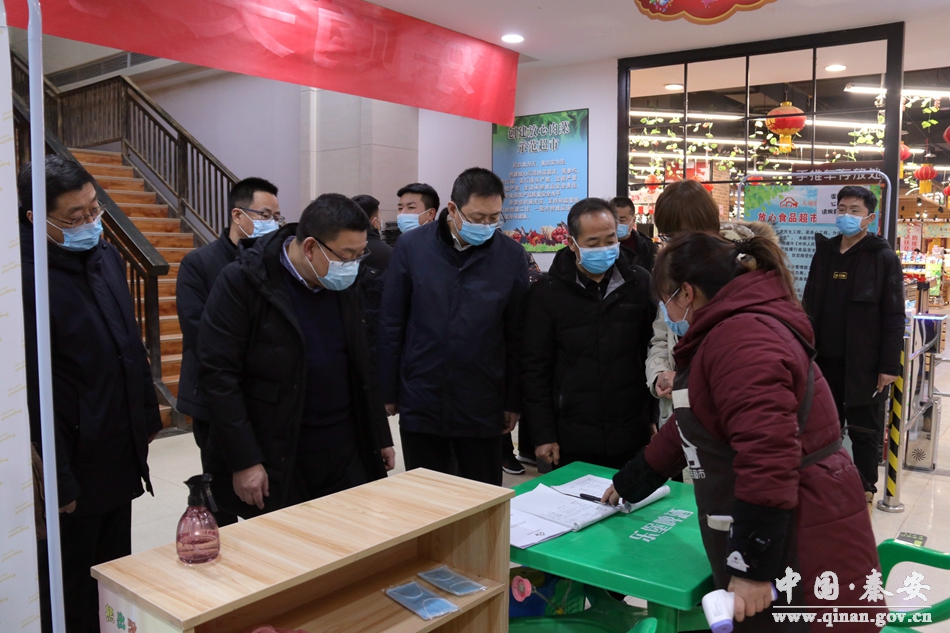 1月9日,秦安縣委常委、組織部部長許祖熙,縣政府副縣長丁遲成帶領(lǐng)縣新冠肺炎疫情防控指揮部成員單位,縣市場監(jiān)管局、商務(wù)局、衛(wèi)健局等相關(guān)部門負(fù)責(zé)人到酒店、超市等重點場所,督導(dǎo)檢查疫情防控工作。