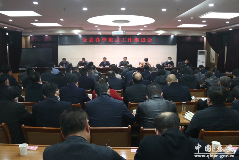 2月26日,秦安縣召開(kāi)春季重點(diǎn)工作推進(jìn)會(huì),對(duì)春季重點(diǎn)工作進(jìn)行安排部署。秦安縣委書(shū)記王東紅,縣委副書(shū)記、縣長(zhǎng)程江芬,縣人大常委會(huì)主任李寬余,縣政協(xié)主席楊喜春等縣四大組織領(lǐng)導(dǎo)參加了會(huì)議。王東紅強(qiáng)調(diào),各鎮(zhèn)各單位要進(jìn)一步強(qiáng)化責(zé)任、細(xì)化舉措,確保全年工作開(kāi)好局、起好步,圓滿完成既定目標(biāo)任務(wù)。