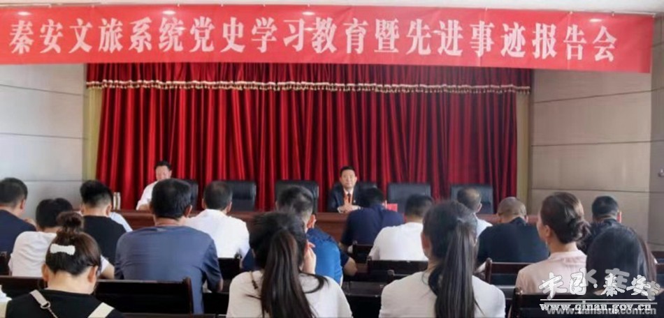 為深入學習貫徹落實習近平總書記在全國黨史學習教育動員大會和全國脫貧攻堅總結表彰大會上的重要講話精神,教育引導廣大黨員干部深入學習黨史和脫貧攻堅先進事跡,做到學黨史、悟思想、辦實事、開新局,6月11日,秦安縣文旅系統(tǒng)組織召開黨史學習教育暨先進事跡報告會。
