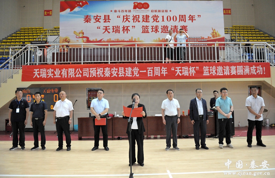 為慶祝中國共產(chǎn)黨成立100周年,進一步豐富全縣群眾的文化體育生活,倡導健康生活理念和生活方式。6月25日,由秦安縣委宣傳部、縣文體廣電和旅游局、縣教育局聯(lián)合主辦,秦安縣天瑞實業(yè)有限公司承辦的秦安縣“慶祝建黨100周年”“天瑞杯”籃球邀請賽在秦安一中體育館隆重開幕。秦安縣委常委、宣傳部部長賈應(yīng)蝶、縣政府副縣長丁遲成參加開幕式。