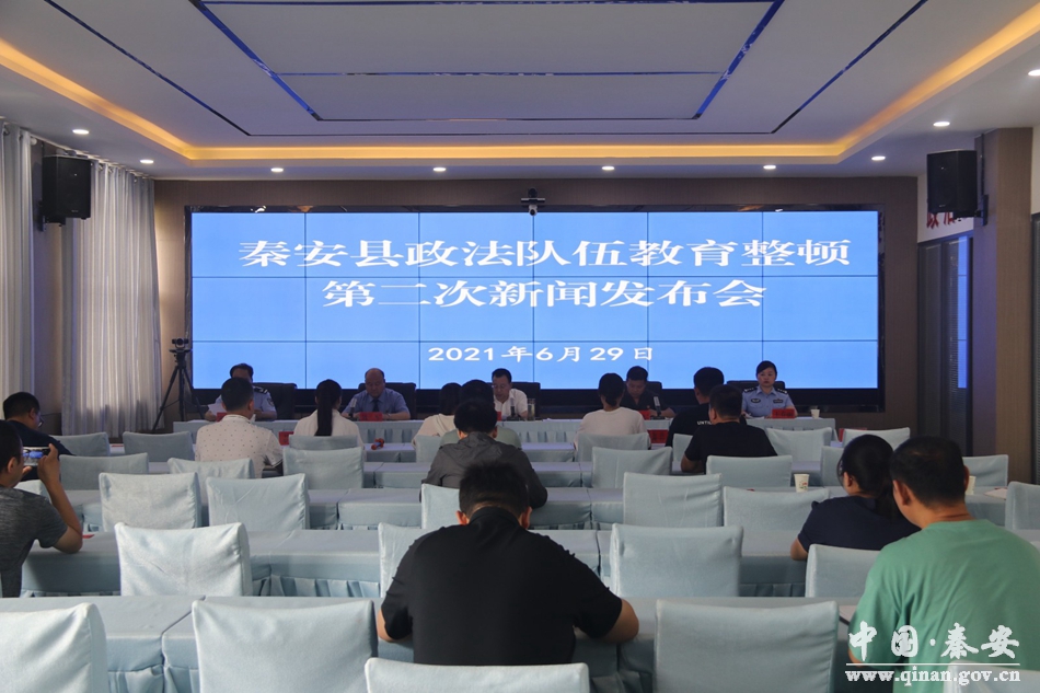 6月29日,秦安縣召開政法隊(duì)伍教育整頓第二次新聞發(fā)布會,通過各類載體,面向社會公開全縣政法隊(duì)伍教育整頓取得的成效,全面展示正風(fēng)肅紀(jì)的決心力度?h政法隊(duì)伍教育整頓領(lǐng)導(dǎo)小組辦公室副主任、教育整頓領(lǐng)導(dǎo)小組各成員單位負(fù)責(zé)人,縣政府網(wǎng)站、縣電視臺、天水秦安發(fā)布、FM96.5秦安廣播記者共計(jì)20余人參加新聞發(fā)布會。