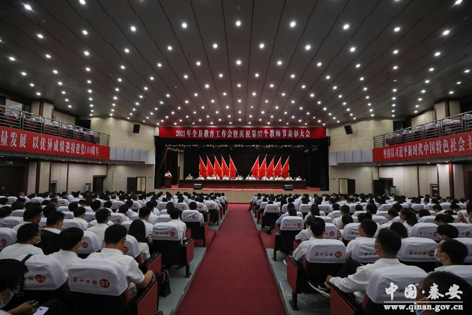 9月10日,2021年秦安縣教育工作會暨慶祝第37個教師節(jié)表彰大會召開。會議深入學習貫徹習近平總書記“七一”重要講話精神和關于教育工作的重要論述,總結全縣教育事業(yè)取得的成績,表彰獎勵全縣教育戰(zhàn)線上涌現(xiàn)出的先進集體和先進個人,部署當前和今后一個時期全縣教育工作,進一步形成全縣上下尊師重教的良好風尚,積極推動秦安教育事業(yè)高質量發(fā)展。