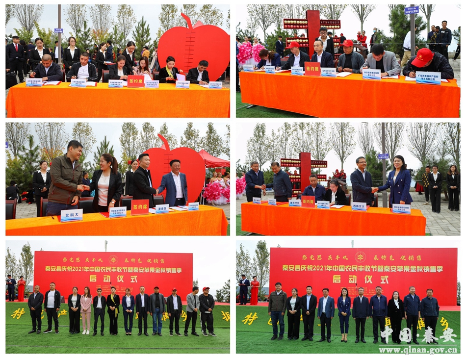此外,在豐收節(jié)上,通過政府搭建平臺,引導(dǎo)幫助全縣龍頭企業(yè)和外地客商簽約、并舉行消費(fèi)幫扶簽約,進(jìn)一步為秦安縣林果產(chǎn)業(yè)發(fā)展注入活力,推動秦安縣經(jīng)濟(jì)社會高質(zhì)量發(fā)展!拔覀冊诖伺e行盛大的2021年秦安農(nóng)民豐收節(jié)暨秦安蘋果金秋銷售活動,通過組織果品企業(yè)、合作社、農(nóng)民代表、廣大種植戶、將自己的產(chǎn)品展示出來,再加上快手、抖音等新聞媒體,把我們秦安的蘋果、蜜桃、花椒等農(nóng)特產(chǎn)品,展示到全國各地、世界各地,通過展示和銷售,讓農(nóng)民的錢袋子鼓起來!鼻匕部h農(nóng)業(yè)農(nóng)村局農(nóng)業(yè)技術(shù)推廣研究員郭成告訴記者。