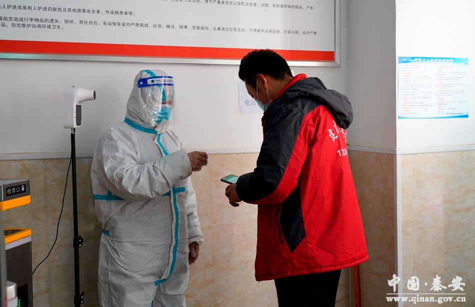 “請佩戴好口罩,拿出手機掃下行程碼……”,在秦安縣汽車站,記者看到,現(xiàn)場工作人員耐心提醒旅客,引導(dǎo)旅客進行掃碼、登記,通過測溫儀監(jiān)測每個進站旅客的體溫,旅客在工作人員的引導(dǎo)下,有序進站乘車。