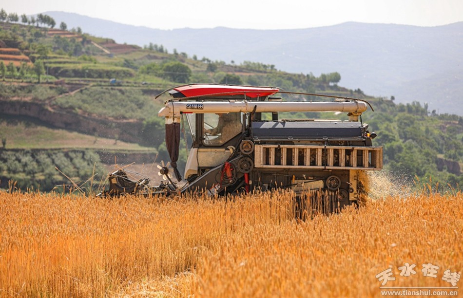 眼下,秦安縣隴城鎮(zhèn)的小麥陸續(xù)成熟,進入采收期。田間地頭,飽滿的麥穗隨風舞動,收割機穿梭在田間,對成熟的小麥進行收割,處處涌動著豐收的喜悅。