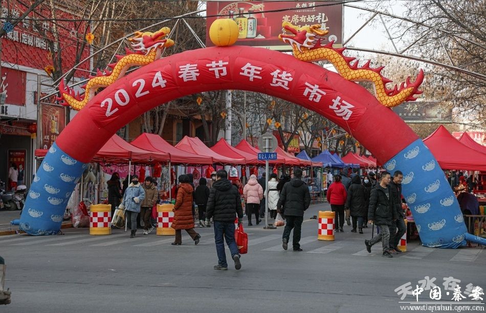 “來來來,巧克力糖果看一看!”“福字春聯(lián)燈籠,進來選一選!”年貨市場上吆喝聲不絕入耳。秦安縣城市管理行政執(zhí)法局副局長趙永勝穿梭在年貨市場,查看著秩序,他告訴記者:“按照縣委縣政府的安排,在城區(qū)公共區(qū)域設(shè)置2024年春節(jié)年貨市場,主要時間是從1月24日開始,2月9日結(jié)束,為期15天!
