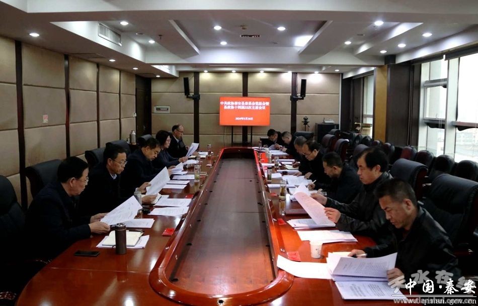 會(huì)議學(xué)習(xí)了《黨史學(xué)習(xí)教育工作條例》有關(guān)法律法規(guī);傳達(dá)學(xué)習(xí)了習(xí)近平總書記在全國“兩會(huì)”上的重要講話精神、王滬寧在全國政協(xié)十四屆二次會(huì)議閉幕會(huì)上的講話、省兩會(huì)精神,傳達(dá)學(xué)習(xí)了中共秦安縣委辦公室關(guān)于印發(fā)《2024年秦安縣落實(shí)全面從嚴(yán)治黨“兩個(gè)責(zé)任”工作清單》的通知;討論通過了關(guān)于調(diào)整派駐市縣政協(xié)委員深入基層開展協(xié)商議事和聯(lián)系服務(wù)界別群眾工作的有關(guān)事宜;研究安排了縣政協(xié)黨風(fēng)廉政建設(shè)和意識(shí)形態(tài)工作,并集體觀看了警示教育片。
