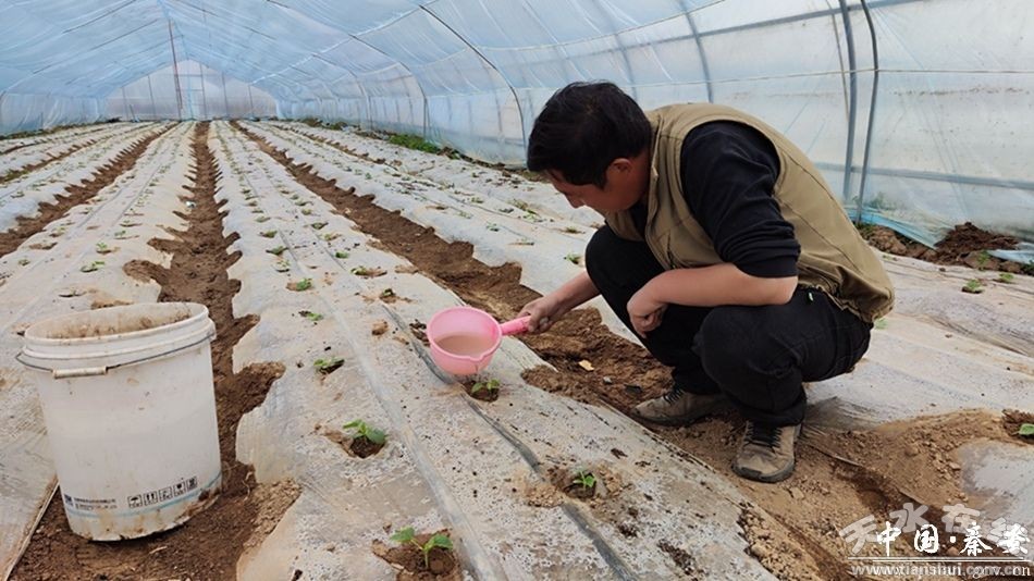 人勤春來早,農(nóng)事催人忙。眼下,正是白脆瓜瓜苗移栽的好時節(jié),走進秦安縣千戶鎮(zhèn)白脆瓜大棚種植基地,瓜農(nóng)們正趁著好天氣,搶抓農(nóng)時移栽瓜苗。嫩綠的瓜苗在薄膜下茁壯成長,呈現(xiàn)出青翠挺拔的姿態(tài),充滿了生機與活力,為今年白脆瓜豐產(chǎn)豐收打下了基礎(chǔ)。