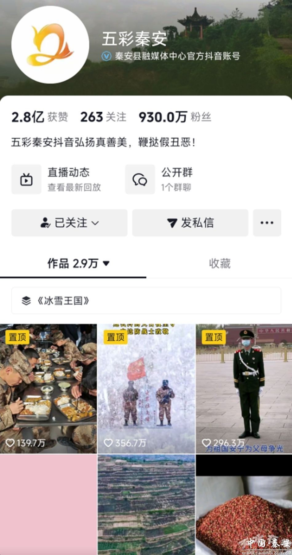 秦安融媒“五彩秦安”抖音號(hào)自2020年5月2日注冊(cè)運(yùn)營(yíng)以來(lái),至目前粉絲達(dá)到930萬(wàn),共發(fā)布作品2.7萬(wàn)余條,獲贊達(dá)2.8億,創(chuàng)單條瀏覽量最高達(dá)9884萬(wàn)、單條點(diǎn)贊最高達(dá)360萬(wàn)、日增粉絲量最高達(dá)6.8萬(wàn)、單條瀏覽量上千萬(wàn)的作品達(dá)到2563條的良好紀(jì)錄,在全省縣級(jí)融媒體抖音平臺(tái)中各項(xiàng)綜合指數(shù)位居榜首,在全國(guó)縣級(jí)融媒體抖音平臺(tái)中粉絲數(shù)量位居第一,2022年、2023年、2024年“五彩秦安”抖音號(hào)連續(xù)三年被省委網(wǎng)信委評(píng)為“甘肅省十佳新媒體賬號(hào)”,新華智云媒體大腦、新華網(wǎng)客戶端和新華網(wǎng)大數(shù)據(jù)中心發(fā)布的全國(guó)縣級(jí)融媒優(yōu)秀榜單中,多次位居第二。