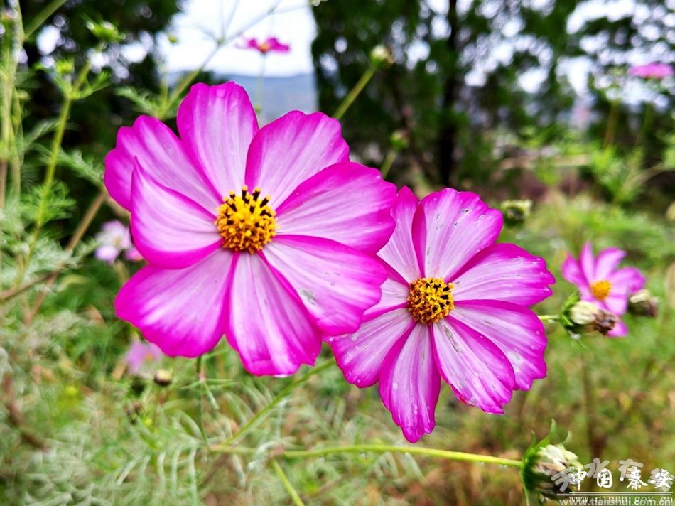 城郊及鄉(xiāng)村的秋景更是美不勝收。城郊一處角落里,一枝枝、一簇簇八瓣梅正迎風綻放著,有淡雅的粉白、嬌嫩的粉紅,也有明艷的玫紅和沉靜的淡紫,有時一朵花上還會呈現(xiàn)出漸變的色彩,為秦安的深秋增添了一抹亮麗而溫暖的色彩。果園里,一個個蘋果綴滿枝頭,紅的似火,黃的如金,與綠葉相互映襯,一派豐收的景象。山林間,樹木的葉子有的金黃透亮,有的橙紅似火,有的仍帶著幾分未褪的綠意,青、黃、紅、橙交織在一起,層層疊疊,如詩如畫。