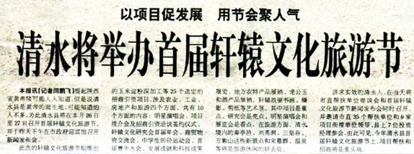 清水將舉辦首屆軒轅文化旅游節(jié)