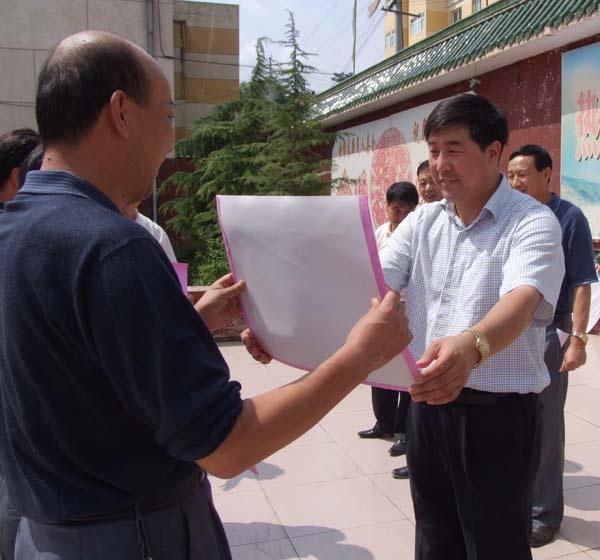 清水縣政府縣長(zhǎng)劉天波在捐贈(zèng)儀式上給受贈(zèng)單位捐贈(zèng)