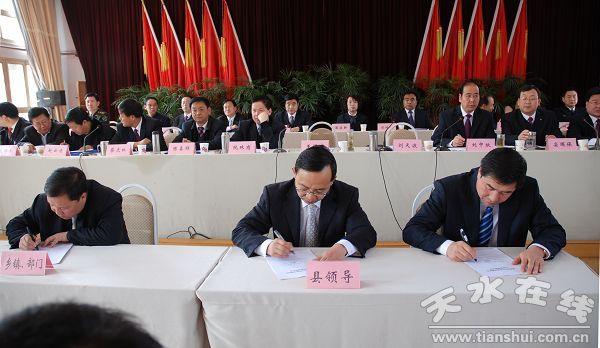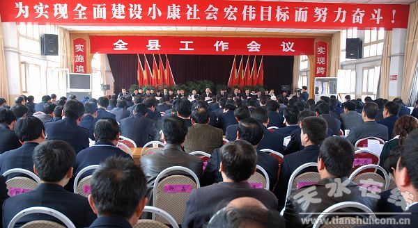 2010年2月27日,清水縣隆重召開全縣工作會議,該縣四大組織全體領(lǐng)導,各鄉(xiāng)鎮(zhèn)黨委書記、鄉(xiāng)鎮(zhèn)長、人大主席,縣直行政事業(yè)單位黨政主要負責人,人大、政協(xié)各工委負責人,省、市駐縣單位主要負責人,各企業(yè)、場、站、城區(qū)學校主要負責人參加了大會。