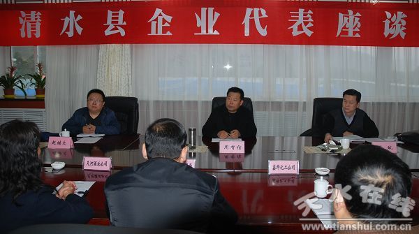 省委第四巡視組副廳級(jí)巡視專員周有信、省委巡視組行政事務(wù)處處長張斌、市委組織部干部監(jiān)督辦副主任趙繼文出席了座談會(huì);清水縣部分企業(yè)代表參加了座談會(huì)。