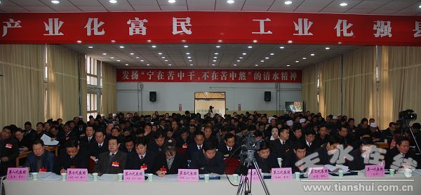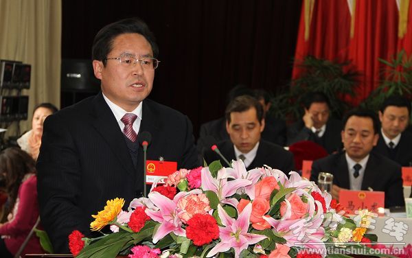 縣委副書記、縣長(zhǎng)劉天波代表縣人民政府向大會(huì)作了工作報(bào)告。他說,“十一五”時(shí)期,是我縣經(jīng)濟(jì)社會(huì)發(fā)展最好最快的時(shí)期。五年來,縣政府以科學(xué)發(fā)展觀為指導(dǎo),積極應(yīng)對(duì)國(guó)際金融危機(jī)、“5·12”地震等重大考驗(yàn),緊緊抓住西部大開發(fā)、擴(kuò)大內(nèi)需和關(guān)中—天水經(jīng)濟(jì)區(qū)建設(shè)等難得機(jī)遇,開拓創(chuàng)新,真抓實(shí)干,全縣呈現(xiàn)出經(jīng)濟(jì)快速增長(zhǎng)、民生持續(xù)改善、各項(xiàng)事業(yè)進(jìn)步、社會(huì)和諧穩(wěn)定的喜人局面,圓滿完成了“十一五”規(guī)劃提出的目標(biāo)任務(wù),取得了追趕戰(zhàn)略和跨越式科學(xué)發(fā)展的新成績(jī)。五年來,始終堅(jiān)持發(fā)展第一要?jiǎng)?wù),經(jīng)濟(jì)運(yùn)行質(zhì)量明顯提高,綜合實(shí)力顯著增強(qiáng);始終堅(jiān)持發(fā)展抓項(xiàng)目不動(dòng)搖,全方位擴(kuò)大招商引資,發(fā)展活力進(jìn)一步增強(qiáng);始終堅(jiān)持狠抓基礎(chǔ)設(shè)施建設(shè)不動(dòng)搖,城鄉(xiāng)面貌變化巨大,發(fā)展基礎(chǔ)更加堅(jiān)實(shí);始終堅(jiān)持以人為本,大力發(fā)展社會(huì)事業(yè),民生建設(shè)取得顯著成績(jī);始終堅(jiān)持狠抓和諧清水建設(shè),全面加強(qiáng)政府自身建設(shè),社會(huì)管理不斷加強(qiáng)。至2010年底,預(yù)計(jì)全縣生產(chǎn)總值達(dá)到21.13億元,較“十五”末增長(zhǎng)1.4倍,年均增長(zhǎng)11.8%;規(guī)模以上工業(yè)增加值8500萬元,較“十五”末增長(zhǎng)4倍,年均增長(zhǎng)38%;社會(huì)消費(fèi)品零售總額3.42億元,較“十五”末增長(zhǎng)1.1倍,年均增長(zhǎng)16.3%;全社會(huì)固定資產(chǎn)投資26.8億元,較“十五”末增長(zhǎng)8.4倍,年均增長(zhǎng)56.7%;大口徑財(cái)政收入1.3億元,較“十五”末增長(zhǎng)5.3倍,年均增長(zhǎng)44%,其中一般預(yù)算收入5400萬元,較“十五”末增長(zhǎng)4.8倍,年均增長(zhǎng)42%;城鎮(zhèn)居民人均可支配收入10035元,較“十五”末增長(zhǎng)89%,年均增長(zhǎng)13.6%;農(nóng)民人均純收入2801元,較“十五”末增長(zhǎng)98.7%,年均增長(zhǎng)14.7%。三大產(chǎn)業(yè)結(jié)構(gòu)由“十五”末的37.6:16.6:45.8調(diào)整到2010年底的29.15:21.3:49.55。生產(chǎn)總值、人均生產(chǎn)總值、規(guī)模以上工業(yè)增加值、全社會(huì)固定資產(chǎn)投資、大口徑財(cái)政收入、社會(huì)消費(fèi)品零售總額6項(xiàng)指標(biāo)較“十五”末翻番,實(shí)現(xiàn)了“十一五”規(guī)劃提出的經(jīng)濟(jì)增長(zhǎng)速度高于“十五”平均水平,高于全市平均水平的目標(biāo)。