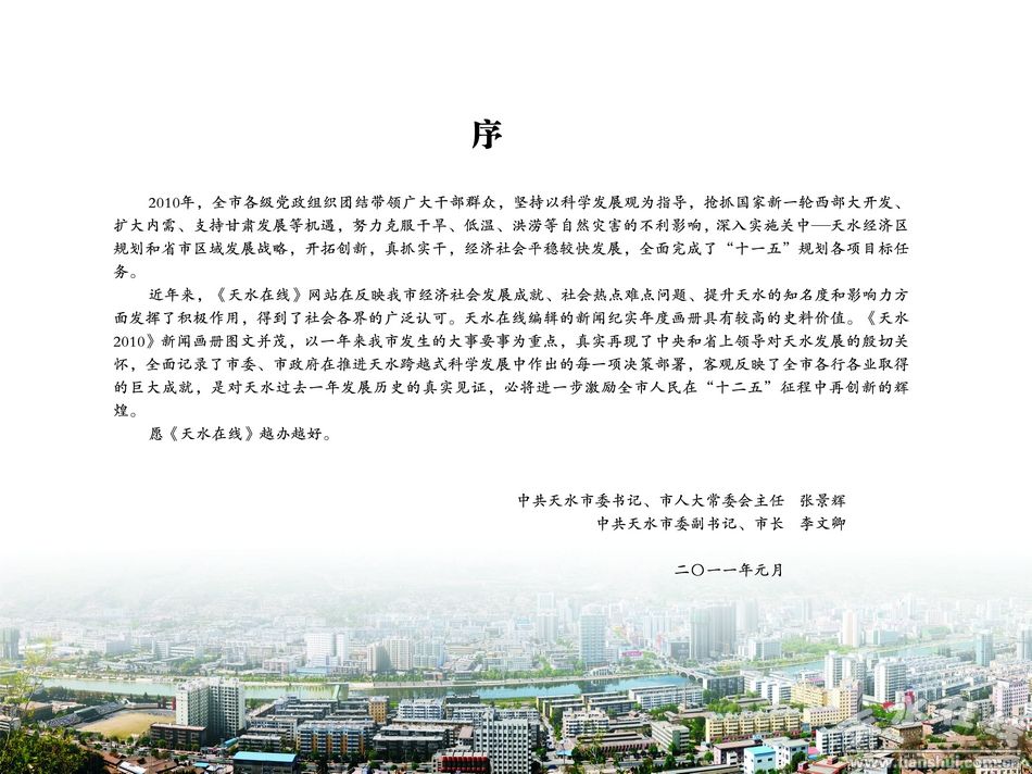 獻給“兩會” 《天水2010》新聞畫冊——清水篇(圖)