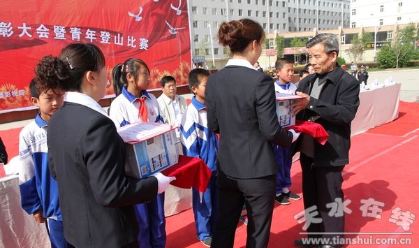 (縣關(guān)心下一代工作委員會常務(wù)副主任王定典為優(yōu)秀少先隊(duì)員頒獎(jiǎng))