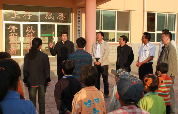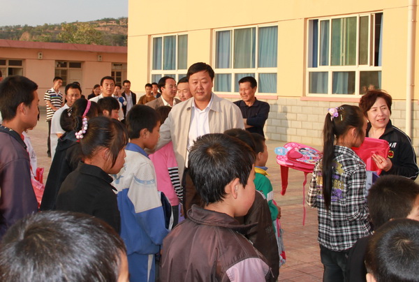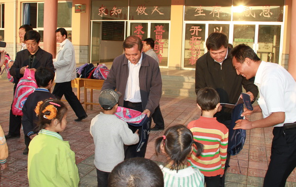 劉天波給青蓮附中困難學生發(fā)放書包等學習用品,并鼓勵他們要好好學習,爭當優(yōu)秀,學有所成,以更好的成績回報社會。