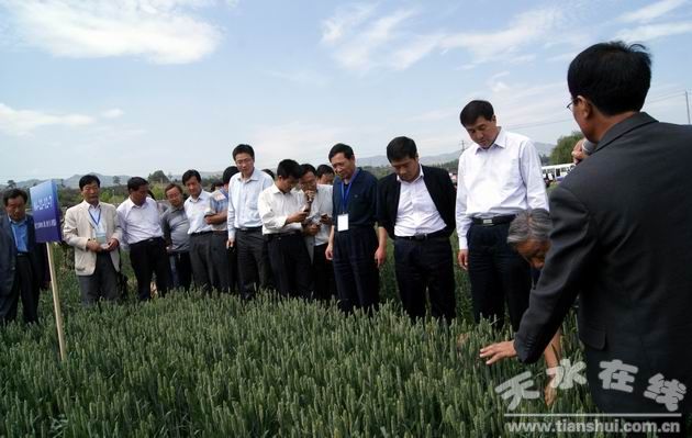在全膜覆土穴播小麥馬溝示范點(diǎn)觀摩