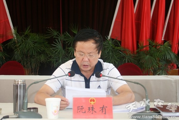 會(huì)上,縣人大常委會(huì)主任阮珠有圍繞縣鄉(xiāng)兩級(jí)人大換屆選舉工作中的具體問(wèn)題做了重要講話;縣委副書記、縣長(zhǎng)劉天波從統(tǒng)一思想,切實(shí)提高對(duì)縣鄉(xiāng)人大換屆選舉工作的重要性等方面作了講話;縣人大常委會(huì)副主任宋洪亮宣讀了《清水縣縣鄉(xiāng)兩級(jí)人民代表大會(huì)換屆選舉實(shí)施方案》。