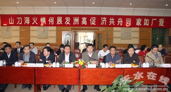 11月25日,清水縣黨政考察團(tuán)和昊峰集團(tuán)在四川宜賓高洲酒業(yè)有限責(zé)任公司考察,考察結(jié)束后,召開(kāi)了經(jīng)濟(jì)交流座談會(huì),雙方就經(jīng)濟(jì)合作進(jìn)行了座談交流。