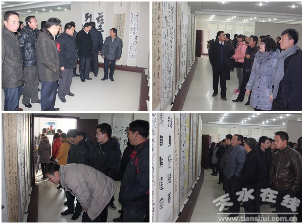 2月1日上午,清水縣“迎新春”甘肅省青年名家書法精品清水邀請展開展。本次展覽共邀請到全省14個(gè)市州80余名著名青年書法家的精品力作80余幅。這次展覽既是清水縣2012年元旦春節(jié)文化系列活動(dòng)20項(xiàng)活動(dòng)之一,也是該縣落實(shí)黨的十七屆六中全會精神和省市有關(guān)精神,積極建設(shè)特色文化大縣的一項(xiàng)具體舉措。必將為全縣廣大書法愛好者搭建交流學(xué)習(xí)和進(jìn)步提高的平臺,為全縣書法藝術(shù)和文化事業(yè)的繁榮發(fā)展發(fā)揮積極的促進(jìn)作用。