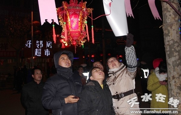 2月5日至6日(農(nóng)歷正月十四至十五日)晚,清水縣在文化館門前舉辦了元宵燈謎晚會,吸引了眾多過往群眾的參與。本次燈謎晚會采用有獎(jiǎng)競猜的形式,共準(zhǔn)備各式燈謎1000多條,一盞盞喜慶的大紅燈籠和五顏六色的謎條將現(xiàn)場氣氛點(diǎn)綴的喜氣洋洋。燈謎經(jīng)過精心挑選,內(nèi)容豐富精彩,涵蓋了字謎、成語謎、物品謎、動(dòng)植物謎、地名謎、歌曲謎等,既富知識性,又具趣味性;顒(dòng)現(xiàn)場張燈結(jié)彩、人聲鼎沸,有的盯著謎面聚精會神的思考著,有的三五成群的討論著,有的靈機(jī)閃現(xiàn),趕忙摘下燈謎去兌獎(jiǎng)……沒過多久,滿滿的燈謎已被大家摘落大半。