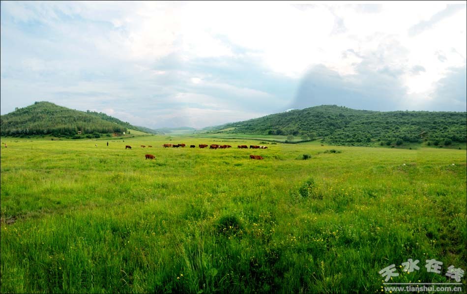 秦亭鎮(zhèn)因秦人先祖非子牧馬有功封邑于"秦亭"而得名,位于清水縣東部30公里處,草地面積6.17萬畝,年平均氣溫5-8 ℃,屬高寒陰濕山區(qū)。獨特的地理環(huán)境,促進了秦亭畜牧養(yǎng)殖業(yè)的發(fā)展,黃牛養(yǎng)殖已成為促進秦亭群眾增收致富的主導產(chǎn)業(yè)。夏日的秦亭張呂牧場,放眼望去,碧藍的天空朗日高照,延綿的群山白云繚繞,習習涼風迎面襲來,感覺如水拂過的清爽傾透全身,絢麗的野花香味四溢,頓時疲意全無。青青的草地上肥壯的牛兒悠悠地覓吻著草綠花香,好一派奇麗絕倫的自然風光,好一幅美麗的高山牧圖。叮當?shù)拟徛暫团g馬叫聲譜成了一曲優(yōu)美的高山牧歌,縈繞于耳畔......