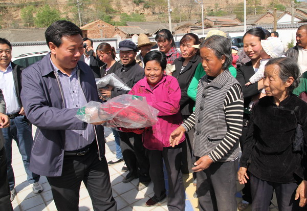 (縣委副書記、縣長(zhǎng)馬越垠為受助困難群眾發(fā)放資助物資)