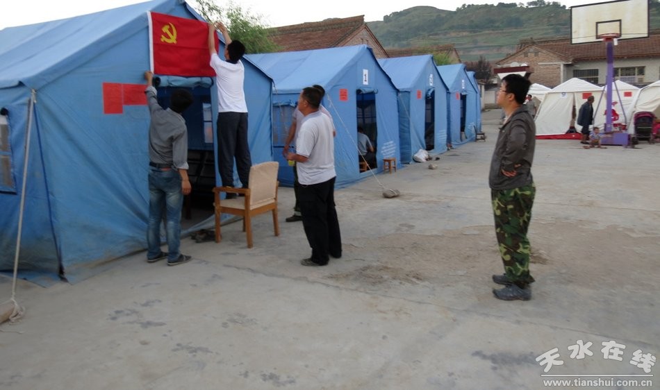 (清水縣白沙鄉(xiāng)安置點搭建臨時指揮部)