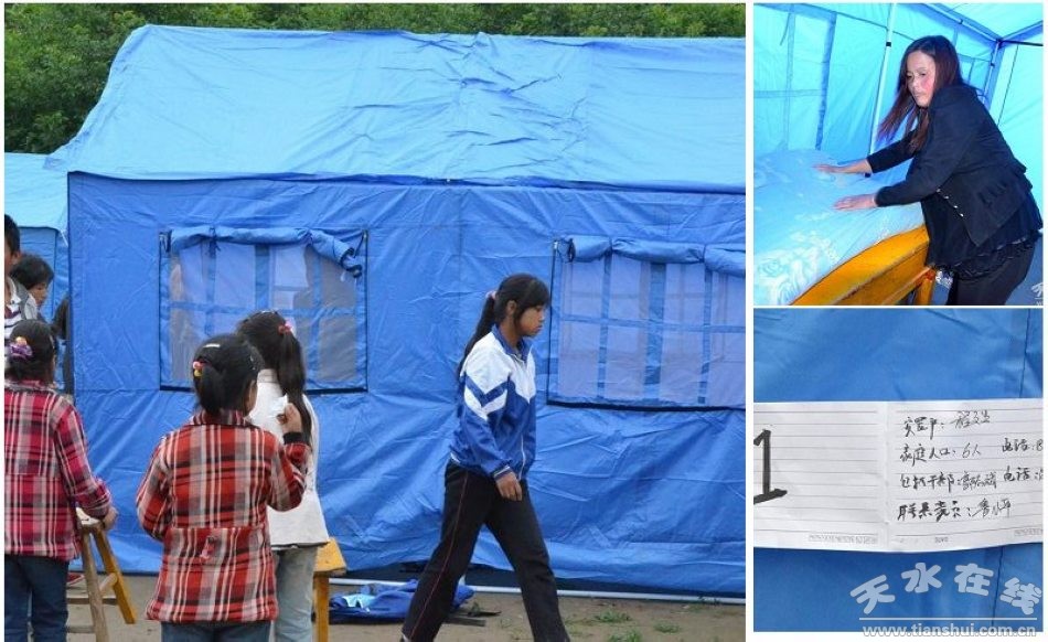 (白沙鄉(xiāng)安置區(qū)在每個帳篷上帖上了受災(zāi)群眾信息明白卡)